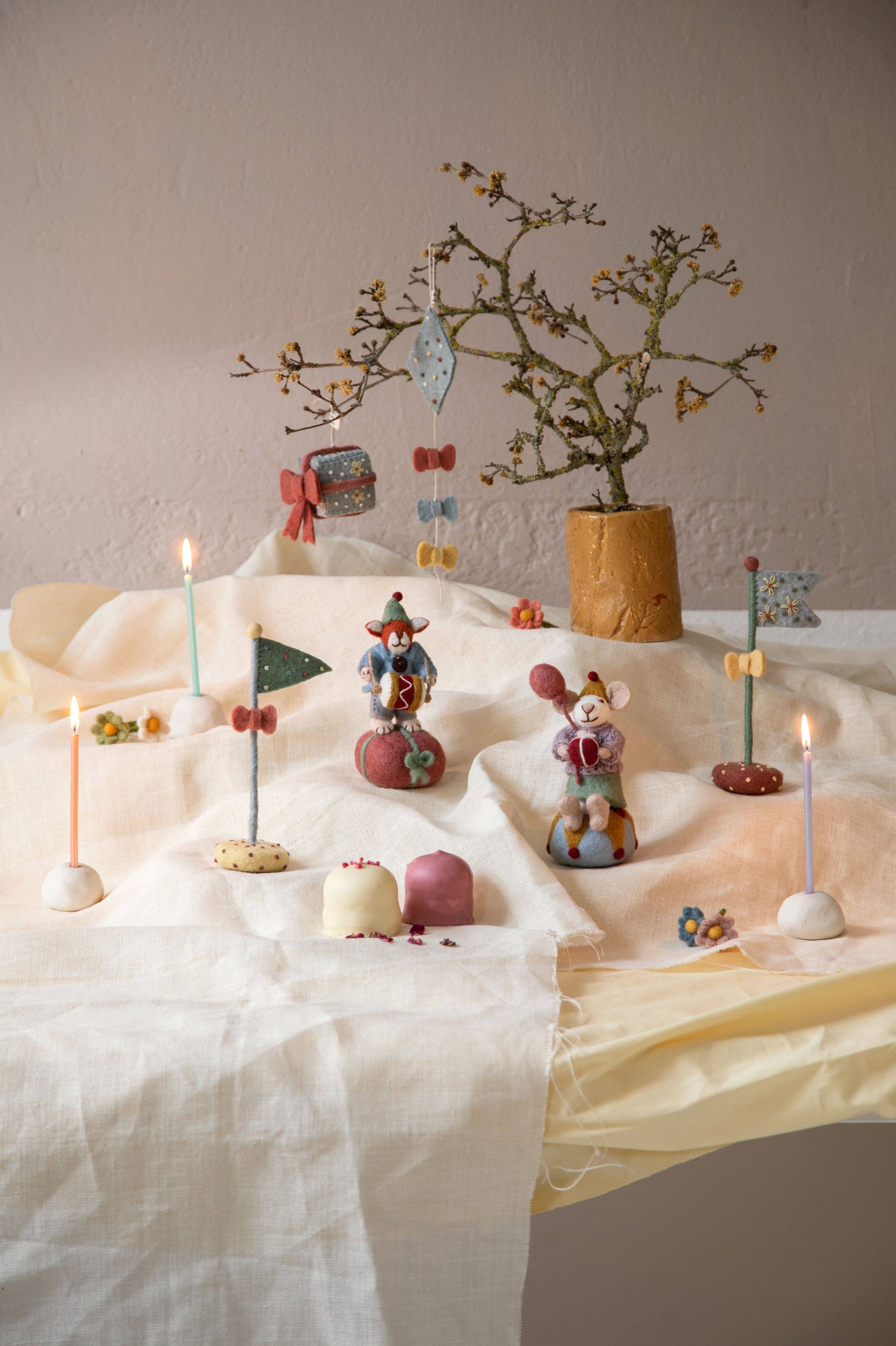 Showcase your love for unique, handcrafted decor with Gry and Sif's Flagpole w/Pale Green Flag & Rose Bow. This decorative tabletop object, crafted by skilled Nepalese artisans, is a testament to the beauty of thoughtful craftsmanship. Made from the finest New Zealand wool, this piece brings a touch of coziness to your surroundings. It's more than just a decoration, it's a symbol of sustainable work practices and fair trade principles. Enjoy the soothing woolen charm this item brings to your home, one stitch at a time.