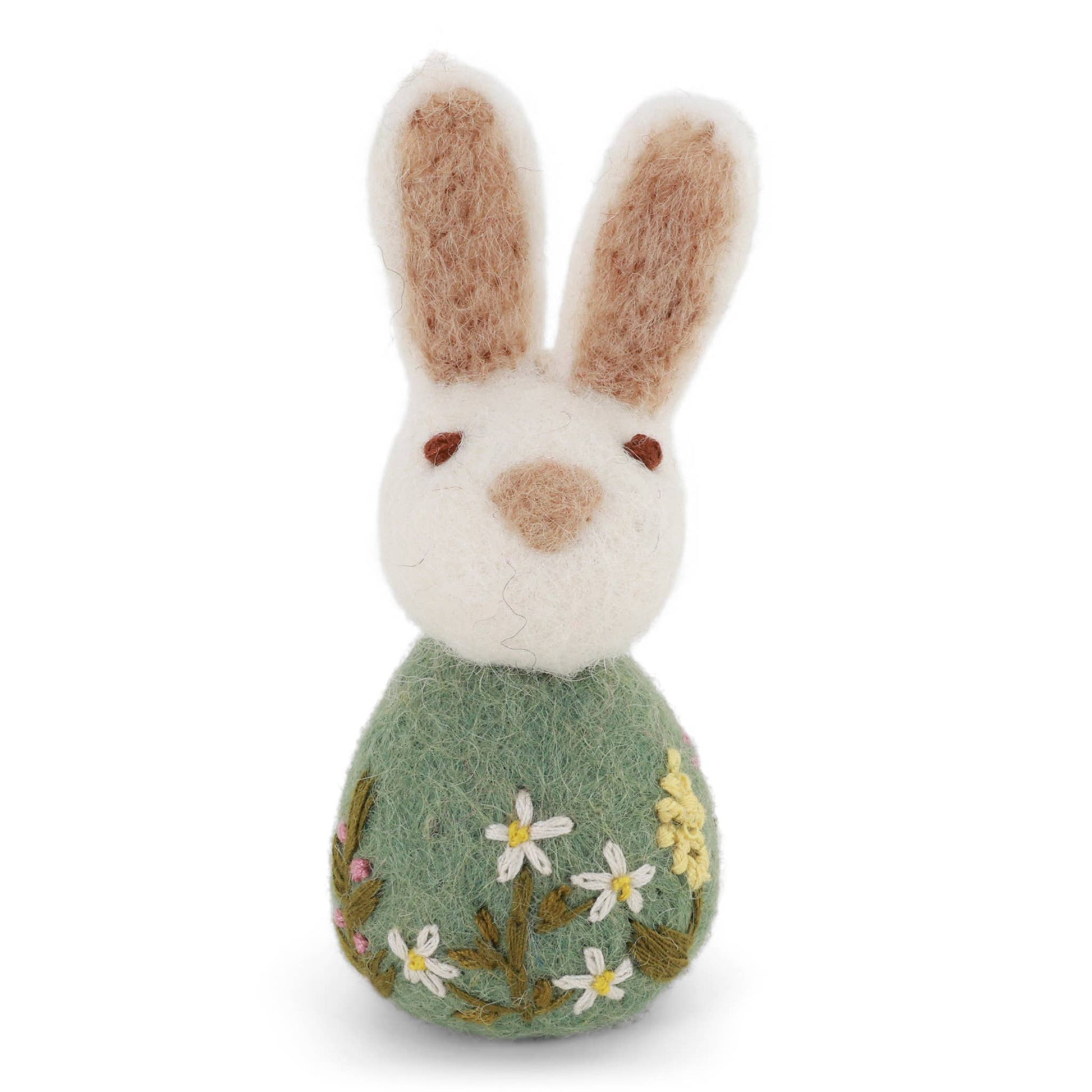 Small Bunny with Flower Embroidery - Green