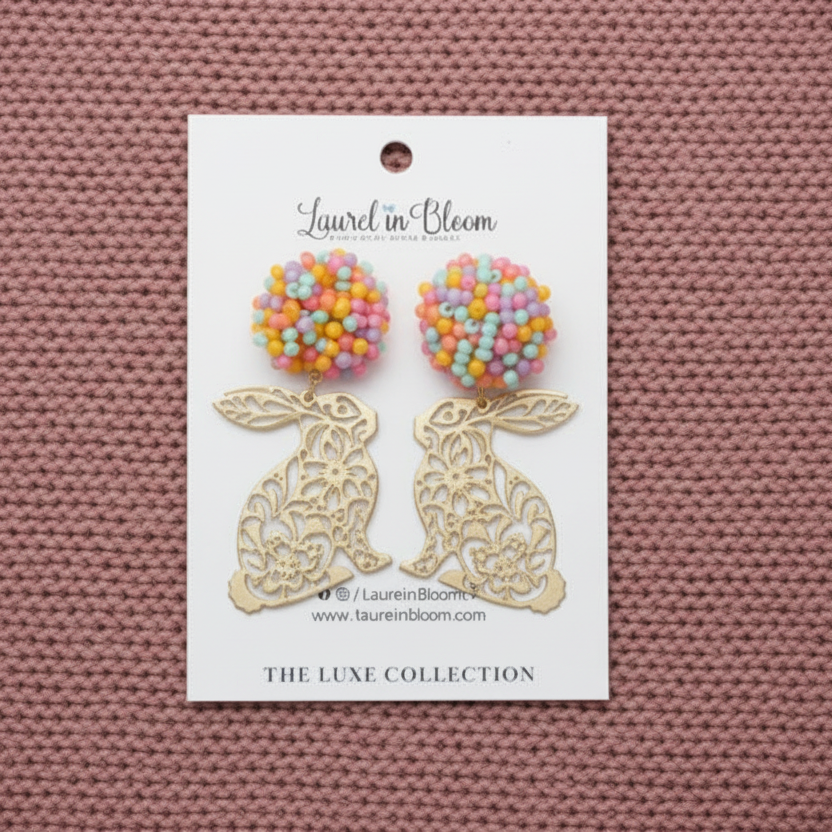 Hop into spring with our most enchanting Easter earrings yet, our Brooklyn Beaded Bunny Dangle Earrings! These delightful dangles feature vibrant multi-color beaded studs paired with intricately carved floral bunny drops that capture all the joy of the season. Generously sized but surprisingly lightweight. Perfect for adding a festive touch to your holiday look, these playful beauties bring whimsy and charm to any outfit. Celebrate in style with jewelry that's as cheerful as Easter morning itself.