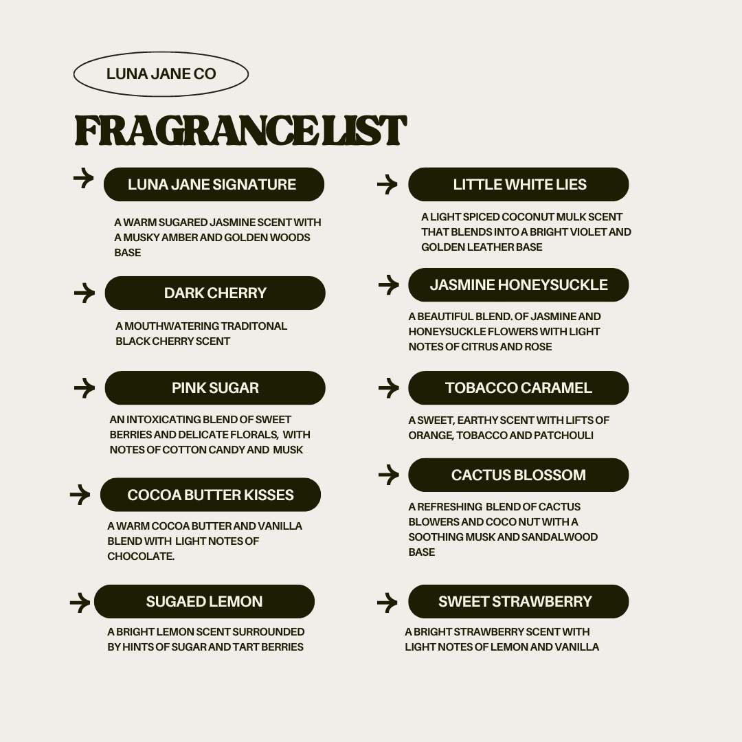Each candle is hand poured with love and is made with a soy blend wax with handmade wax strawberries and flowers. Each candle is between 12-16 ounces with a sparkly base when melted!