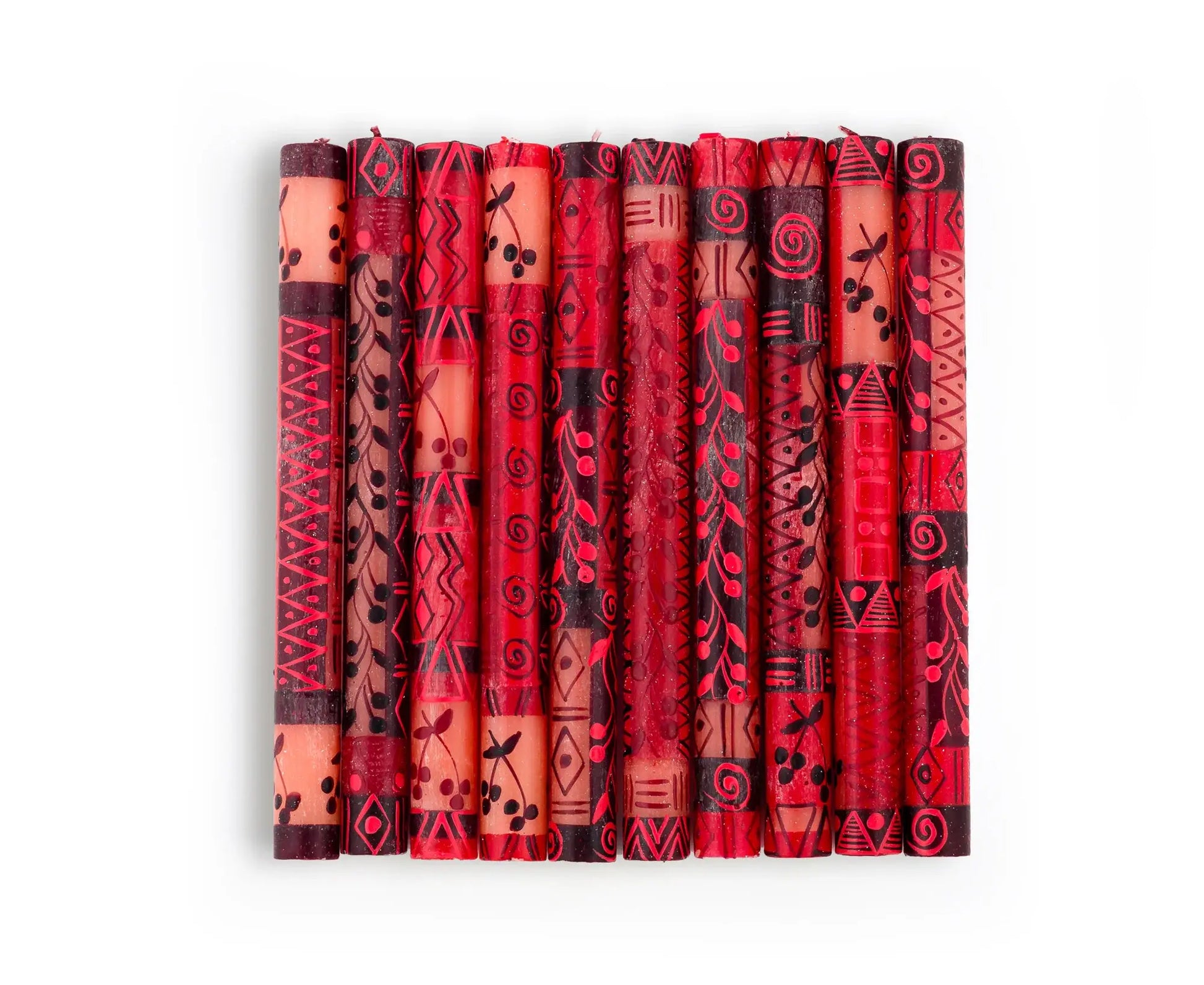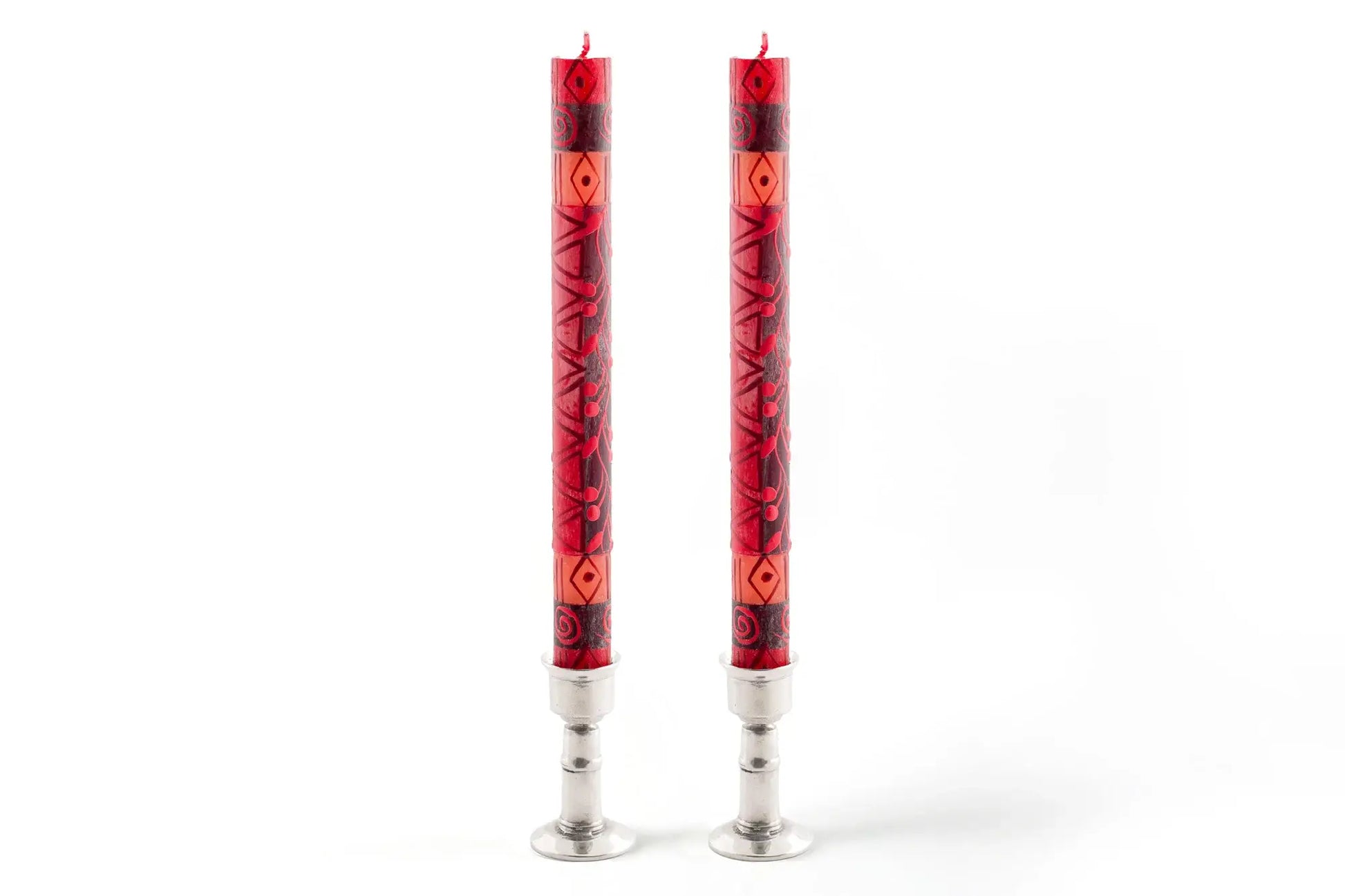 *Lovingly hand poured, and hand painted in South Africa. *Crafted primarily by single mothers from the local rural community. *On average, the artisans support an extended family of 12-15 people. PRODUCT DESCRIPTION: *Highest quality natural paraffin wax with 100% cotton wick *Unscented, smokeless, and free from added toxins *Tapers packaged as a matched pair *Each candle is uniquely made. Your delivered candle will likely appear slightly different from the website photo, but consistent with the theme of the collection. CANDLE CARE: *First burn time: 1-hour for every inch diameter *Wicks should always be cut to ¼” prior to lighting *Avoid drafts – they cause dripping! *Ensure candles are extinguished prior to leaving the room