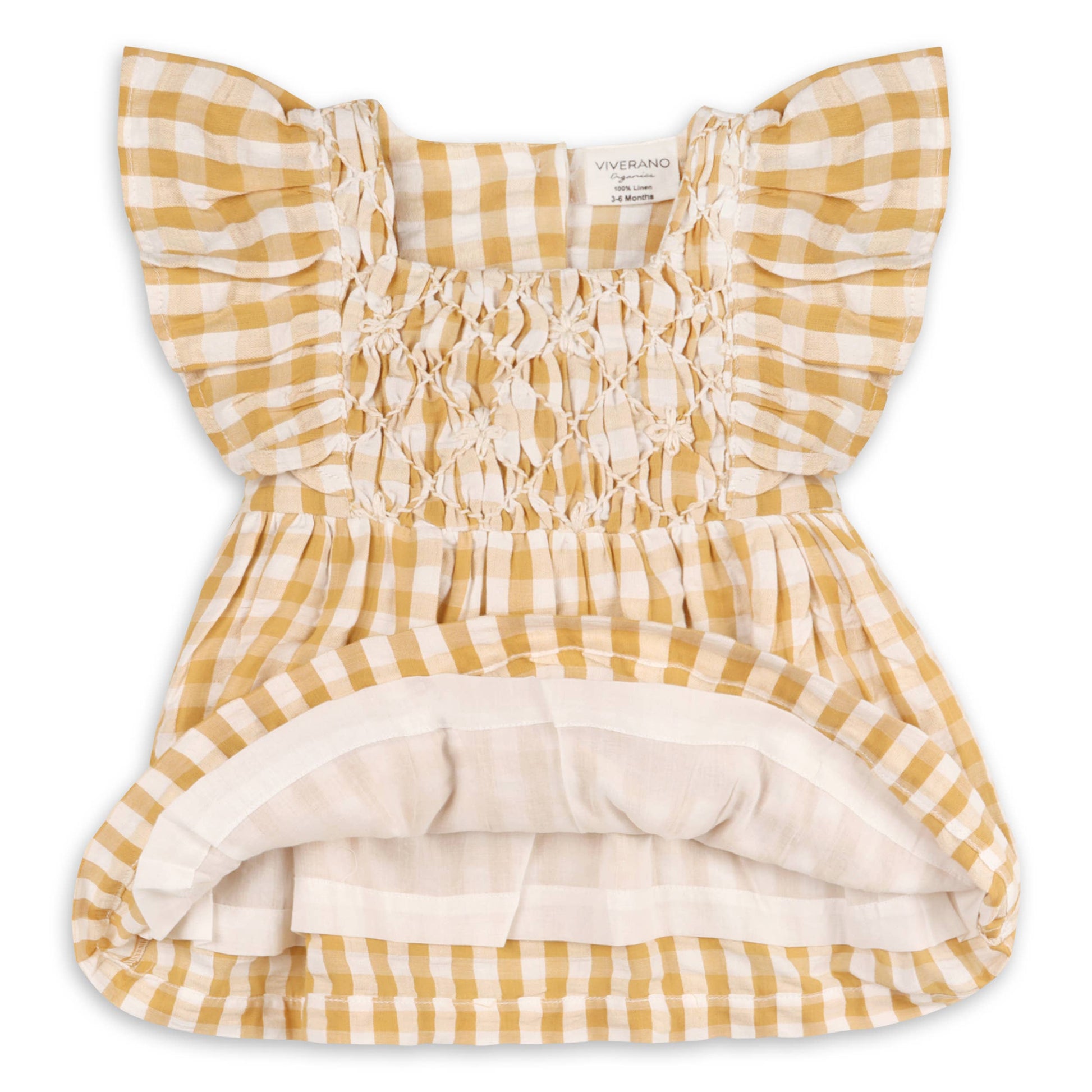 Alina Hand-smocked Seersucker Baby Dress + Bloomer (Organic)